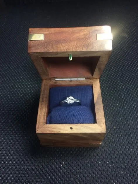 Aaron knew that if he waited for the diamond ring from New York to be completed after his trip to Scotland, I wouldn’t be as surprised when he proposed. So Aaron, being a romantic renaissance man, decided to MAKE me a ring as a stand-in until the diamond ring arrives. As in, he ordered materials and instruction books and created a welding station at his desk at work and HAND MADE a gorgeous silver ring. Not just any silver ring. It is the sailor’s love knot, which represents unity between two strands—a historical tradition of nineteenth century sailors to give their sweethearts when they went out to sea. Often times couples include a knot-tying ceremony in their weddings, and the ring’s knot is the same that is tied during weddings to signify unbreakable unity. Aaron is an officer in the Coast Guard, giving the sailor’s love knot on the ring that much more meaning. I still can’t believe he made it…I mean, that is some next level stuff, as I’m constantly reminded by girls who look at it with stars in their eyes and guys who comment about having to step up their game when they hear the story. His hands did not escape unscathed by acid burns and scrapes…apparently making fine jewelry is quite a process. (Thanks to the amazing friends in his office who helped him knot the silver strands and find the box!)