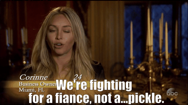 The fact that Rachel’s sister didn’t think Nick would know these foods really alarms me. If anyone thinks the racial divide in our country isn’t an actual issue, this should really make things clearer for ya.Rachel’s mom continues the conversation about skin color by telling Nick that there might be more struggles than he thinks in regards to an interracial relationship. Nick continues to impress by handling all of the concerns beautifully, and they agree that they wish they didn’t even have to have this conversation in the first place. Mom gives Nick her stamp of approval by comparing him to her husband, which sends Rachel into a tizzy of happiness. It’s the first time I realize that she’s going to have her heart completely broken before finding out that she’s the Bachelorette, and I am very upset thinking about when that time comes.CORINNEMiami, FLCorinne greets Nick in a flowy crop top and sneakers that have fuzzy balls on them because fuzzy balls pair nicely with platinum vagines. She informs him that they’re going shopping in one of the most exclusive malls in Miami! I honestly had no idea that exclusive malls existed, which just shows how excluded I am. As they walk into each shop with giant bags that are supposed to remind us of Pretty Woman, Nick notes that Corinne is on a first name basis with all the shop owners. He soon realizes it’s because they always have to call her an Uber to take her drunk ass home every time she shops with them while chugging champagne (which apparently they always offer). Or maybe it’s because her average spending amount is equivalent to that of one month’s pay for the above-average American.She explains to Nick that the dressing room is your holy ground, and proceeds to dress him like a Miami Ken Doll. My personal favorite were the bedazzled loafers, though my husband was really impressed by the dress shoes covered in hair of the original Grinch. See Exhibit B:They pass on the $800 sweatpants, but decide on a more practical $3,500 purchase of Nick’s 38th pair of black skinny jeans and his 11th grey sweater. Throw in a pea coat because why not. Corinne uses daddy’s credit card to pay for everthing, which means Nick’s balls have officially been replaced by the pair on Corinne’s shoes, which her father will have no problem reminding him as soon as they sit down.Jim, the Greek father, to Nick: “My biggest concern is that you can’t afford Corinne’s lifestyle, and she will have to be the breadwinner.”Nick interprets this correctly, which is to say that Jim would actually be the breadwinner by continuing to give his daughter a bottomless credit card. Nick assures Jim that he hopes to be the breadwinner, but is grateful that Corinne loves him enough to say that she’d actually go to work if it meant they could be together. After a few minutes, Jim is drunk enough on his 15-year-old scotch that he gives Nick his approval, and reminds him that if he chooses Corinne, he’ll always have good scotch at his disposal.No joke, I’m 99% sure my dad said the same thing to my husband when he was asking for my hand in marriage. But I didn’t come with a bottomless credit card or anything pretentious, for the record. Just the good scotch and a lifetime of Broadway sing-alongs.Jim sums up the night: “I think Nick is the lid to Corinne’s pot!”Aha!! Now we know where Corinne gets her creative phrasing from.He also speaks exclusively in the third person, which is yet another Corinne-ism that now makes much more sense.You may have noticed that I skipped right on over the most anticipated part of this Hometown, Raquel the nanny. But everybody, what is the NUMBER ONE rule of Bachelor world??Say it with me!Teasers are always better than what happens.And AGAIN!Teasers area always better than what happens.But since you must know, here’s what Raquel did: