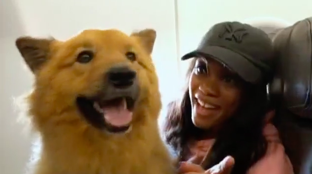 The limo pulls up with Rachel’s friend inside, and out pops…Copper! Copper the pup has a cast on his leg, but that doesn’t stop him from being in the BEST mood! What a champ. We don’t find out what happened to his leg, which is rude, but he takes to Peter nicely as they fly to their destination.