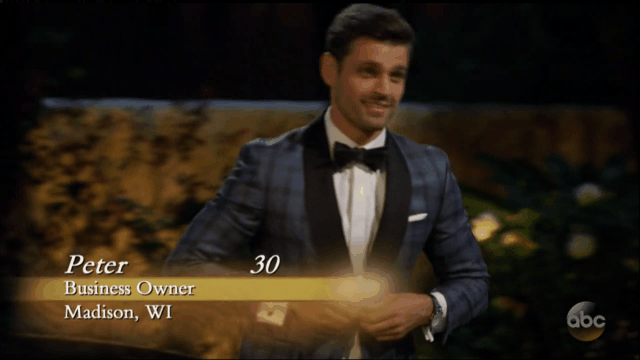 Peter’s the cutie with the matching gap in his teeth, so I fully support Rachel’s pick. He was my #2 after Bryan on the first night.