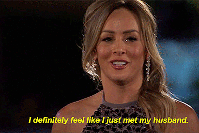 We get a brief synopsis of Clare’s extensive participation in Bachelor spin offs. She laments never having a happy ending on any past Bachelor show, somehow conveniently ignoring altogether that one time SHE GOT ENGAGED AT THE END OF BACHELOR WINTER GAMES. Are we..am I..why do I feel like they’re gaslighting me?